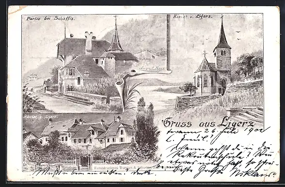 AK Ligerz, Partie bei Schaffis, Gebäudeansicht, Kirche