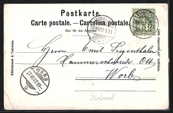 gelaufen 1902, Eckknicke li. oben und re. unten, guter Zustand