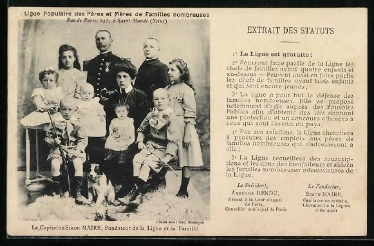 AK Ligue Populaire des Pères et Mères de Familles nombreuses, Unterstützung von kinderreichen Familien