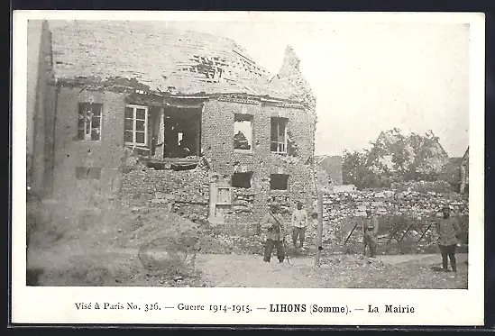 AK Lihons, La Mairie endommagée pendant la Guerre 1914-1915