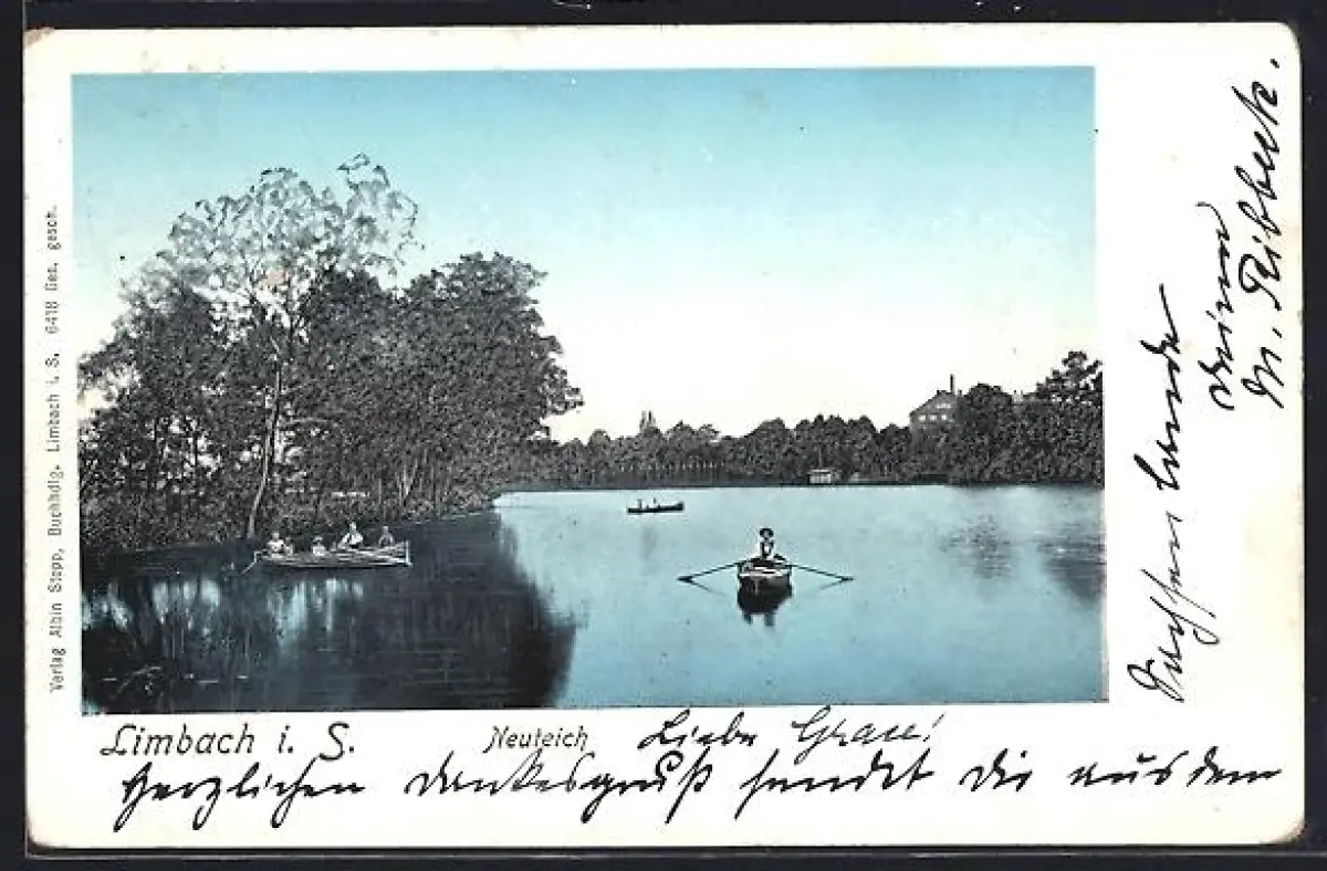AK Limbach / Oberfrohna, Neuteich mit Ruderboot