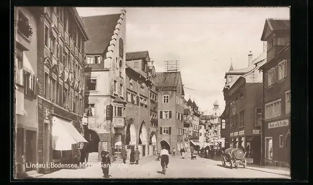 AK Lindau /Bodensee, Maximilianstrasse mit Passanten