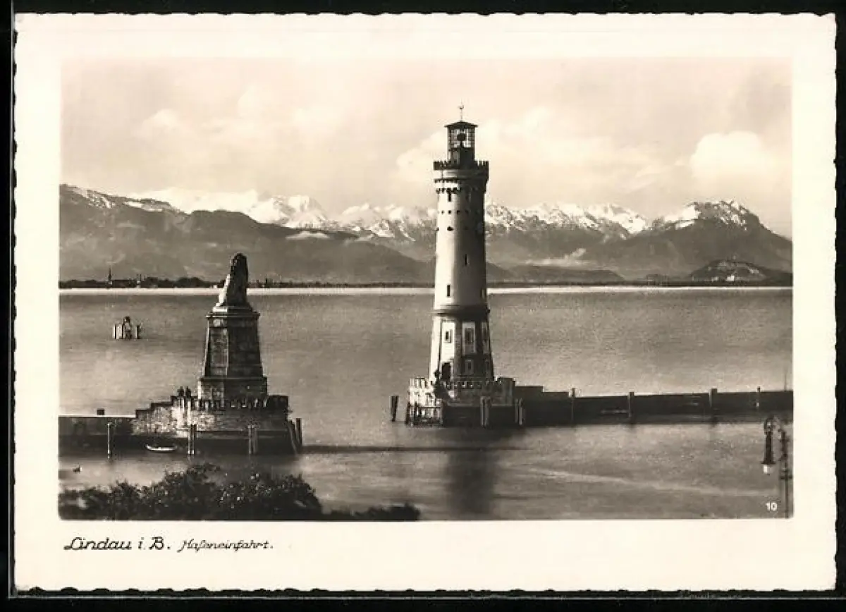 AK Lindau i. B., Hafeneinfahrt mit Leuchtturm