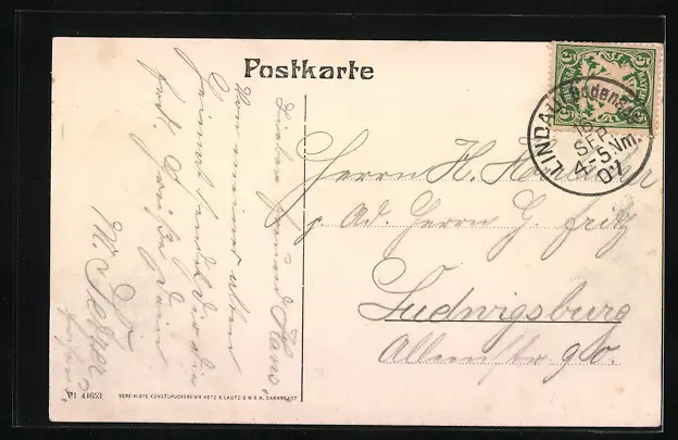 alte Ansichtskarte, gelaufen 1907, guter Zustand