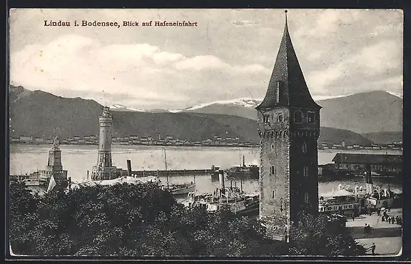 AK Lindau i. Bodensee, Blick auf Hafeneinfahrt