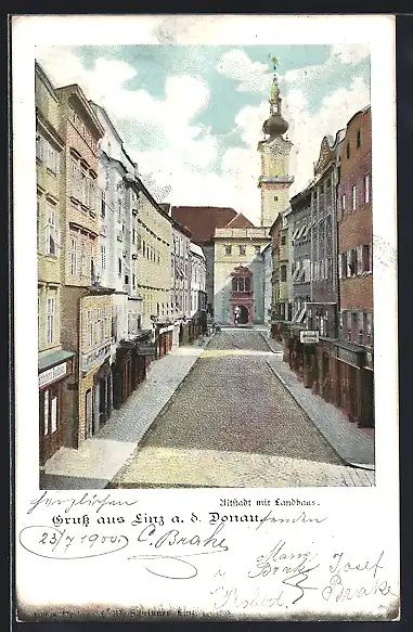 AK Linz /Donau, Strassenpartie in der Altstadt mit Landhaus