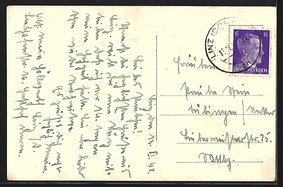 alte Ansichtskarte, gelaufen 1942, Einrisse oberer Rand, Eckknick rechts oben, guter Zustand