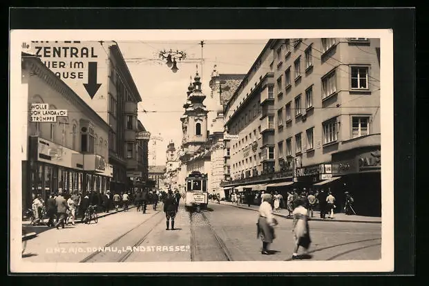AK Linz a. D., Landstrasse mit Strassenbahn