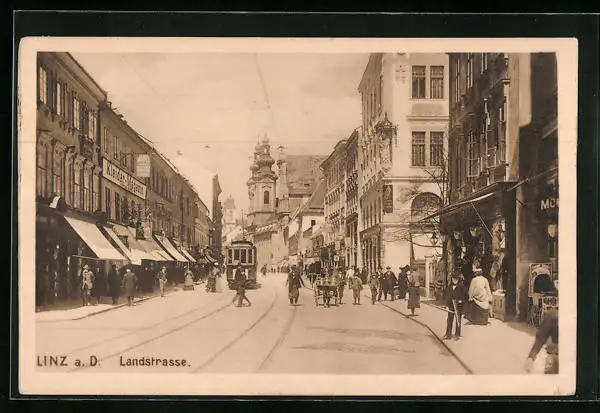 AK Linz a. D., Landstrasse mit Strassenbahn