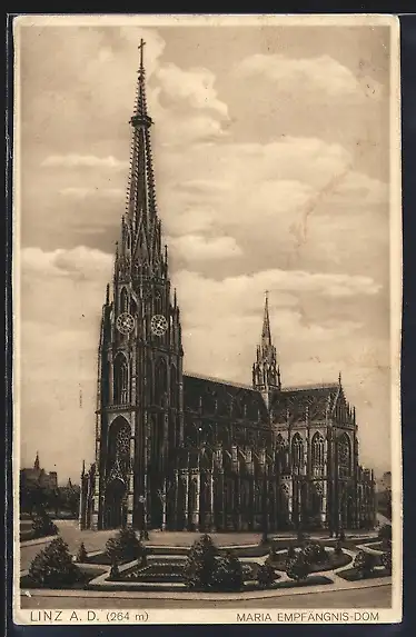 AK Linz a. D., Maria Empfängnis-Dom mit Anlagen