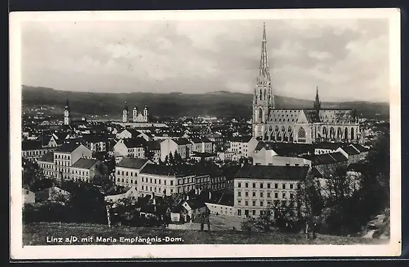 AK Linz a. D., Ortsansicht mit Maria Empfängnis-Dom