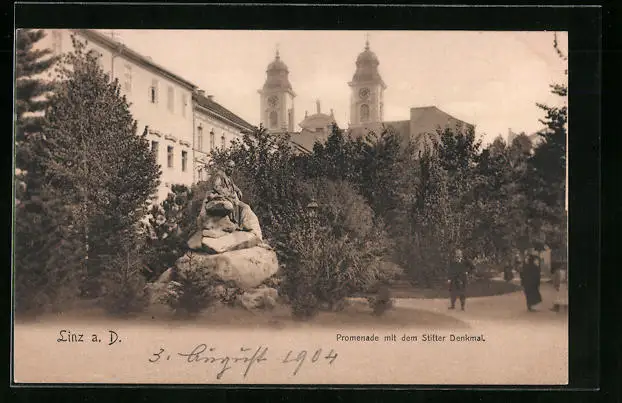 AK Linz a. D., Promenade mit dem Stifter Denkmal