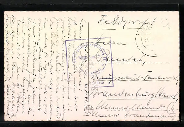 gelaufen 1941 als Feldpost, Briefmarke entfernt, guter Zustand