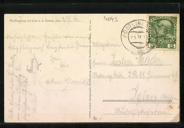 gelaufen 1916, Eckknicke li. unten, rückseitig Oberflächenschaden, guter Zustand