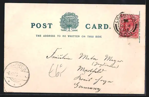 alte Ansichtskarte, gelaufen 1903, Stempelspur, guter Zustand