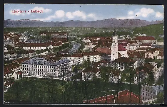AK Ljubljana, Ortsansicht mit der Kirche