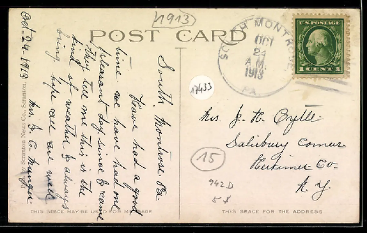 alte Ansichtskarte, gelaufen, rückseitig Klebe- und Papierreste, guter Zustand