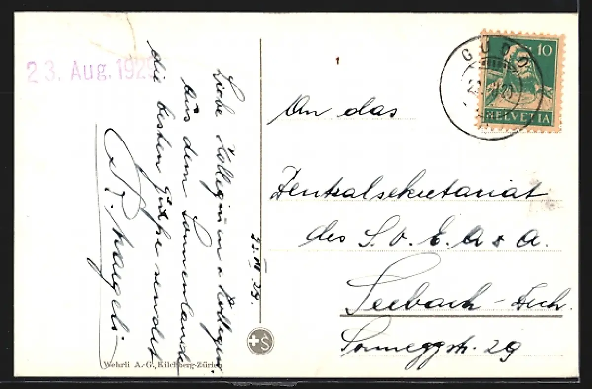 gelaufen 1929, Bugspur re. oben, guter Zustand