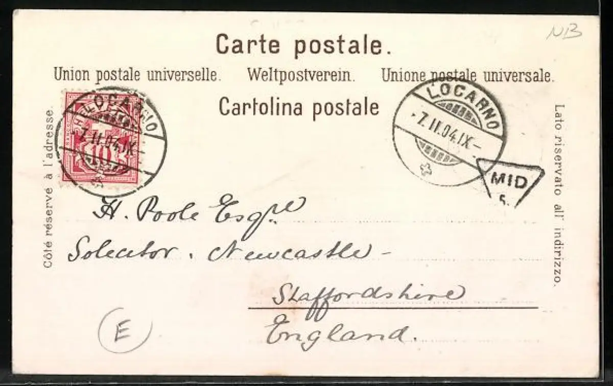 gelaufen 1904, Eckknick links unten, guter Zustand