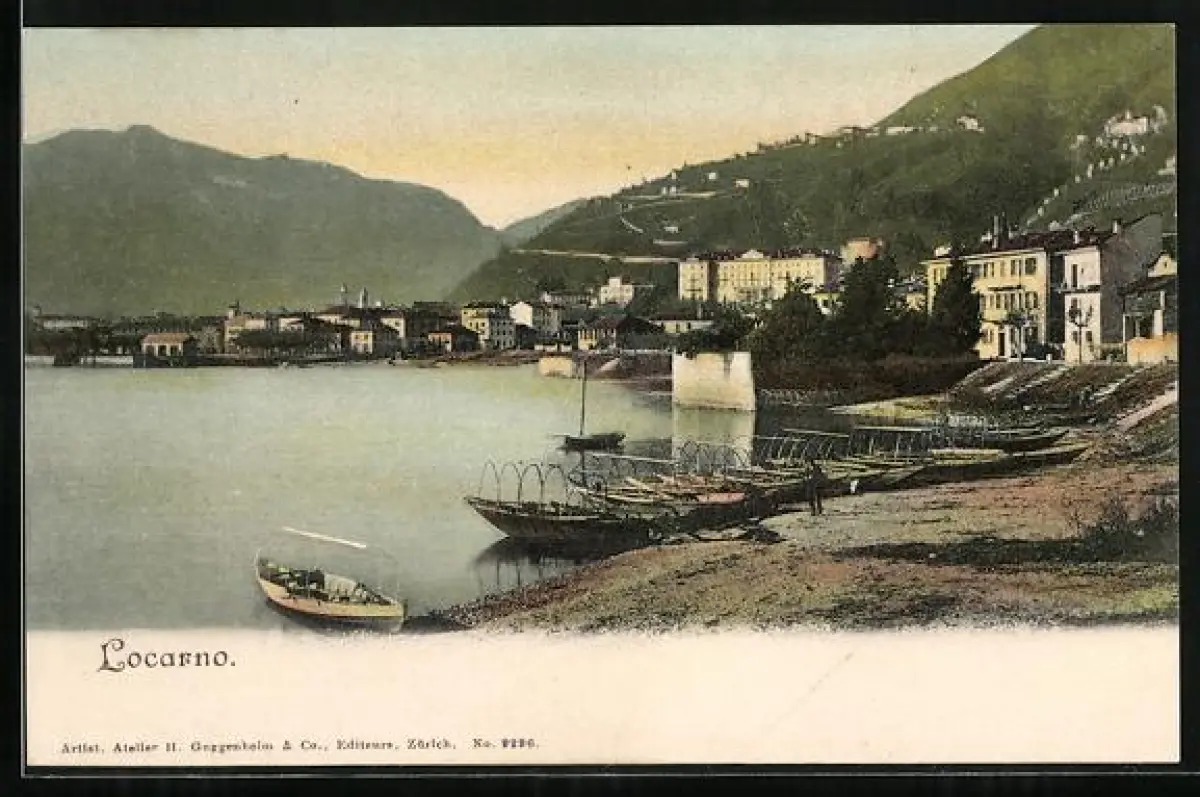 AK Locarno, Panorama mit Booten