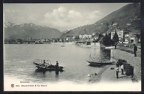 AK Locarno, Uferpartie mit kleinen Fischerbooten