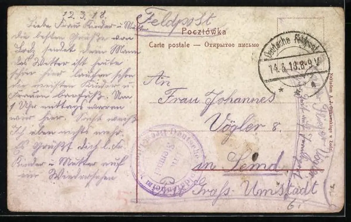 gelaufen 1918, Eckknicke re. oben u. li., guter Zustand