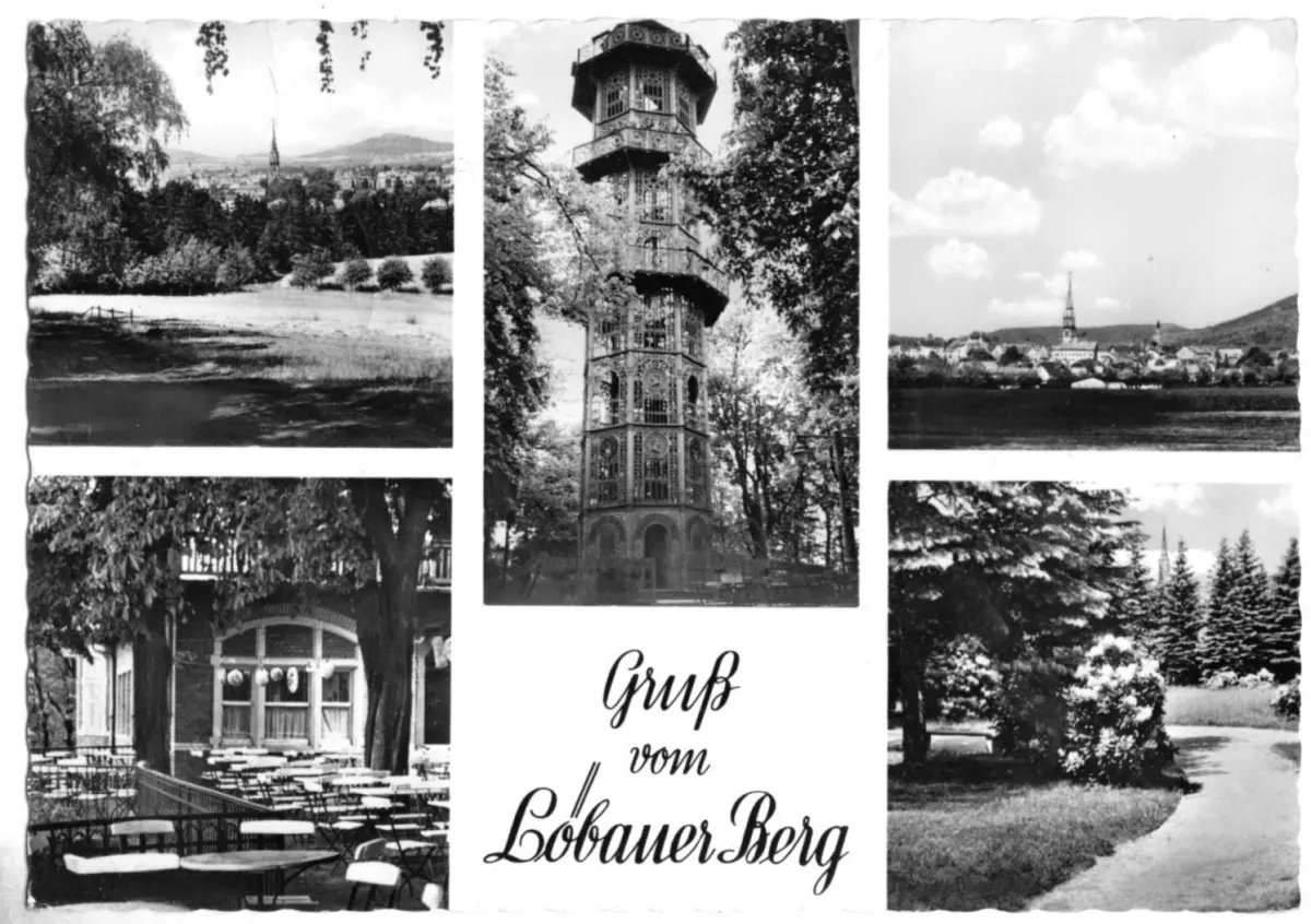 Ansichtskarte Löbau Gruß vom Löbauer Berg fünf Abb. Erhaltung I-II, Beförderungsspuren postalisch gelaufen, gestempelt: Görlitz, 14.7.60 Druckvermerk: 1959 Herstellungsland: DDR Verlag: Graphokopie H. Sander KG, Berlin - S189