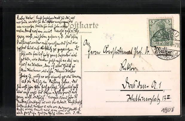 alte Ansichtskarte, gelaufen 1908, guter Zustand