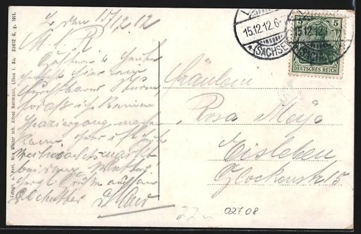 alte Ansichtskarte, gelaufen 1912, Abriebspur oben links, guter Zustand