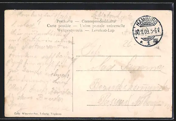 alte Ansichtskarte, gelaufen 1909, guter Zustand
