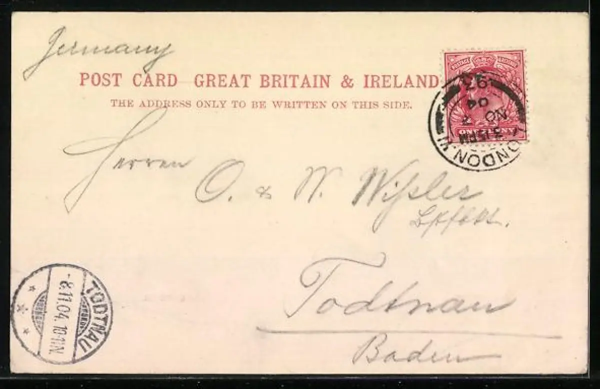 gelaufen 1904, Eckknicke li. unten, guter Zustand