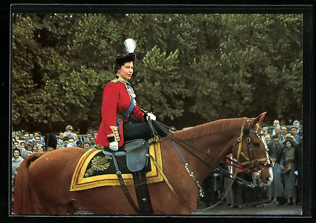 AK London, Königin Elizabeth II. in Uniform zu Pferd