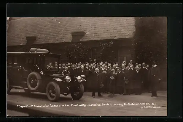 AK London, Royal Visit to Woolwich Arsenal 1913, Central Musical Society singing the National Anthem