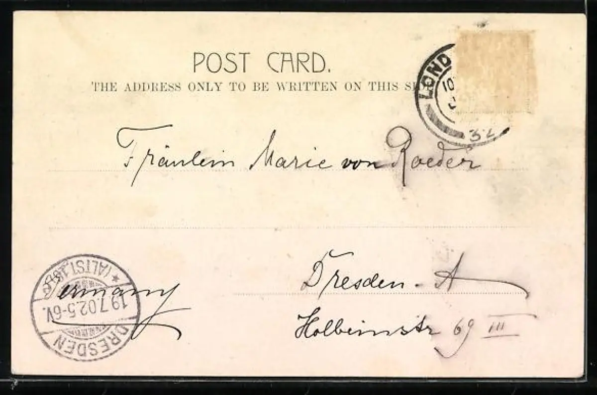 gelaufen 1902, Briefmarke entfernt, guter Zustand