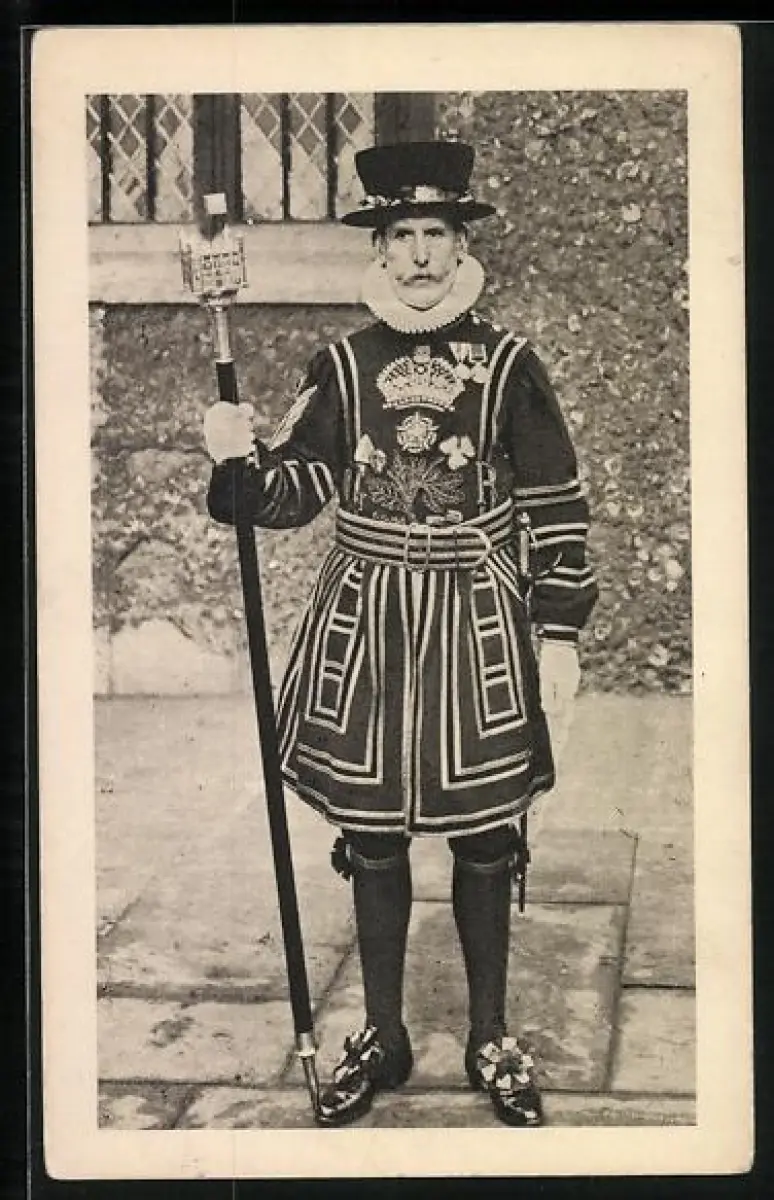 AK London, Tower of London, Head Warder in State Dress, Britischer Soldat