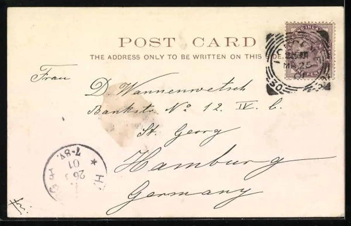 alte Ansichtskarte, gelaufen 1901, Eckknick li. unten, guter Zustand
