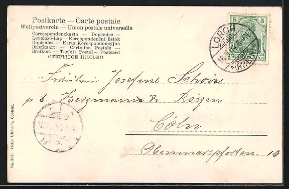 alte Ansichtskarte, gelaufen 1904, Eckknick li. unten, guter Zustand