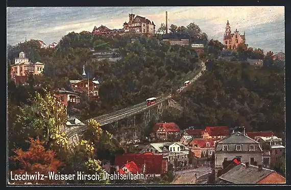 AK Loschwitz-Weisser Hirsch, Drahtseilbahn mit Luisenhof