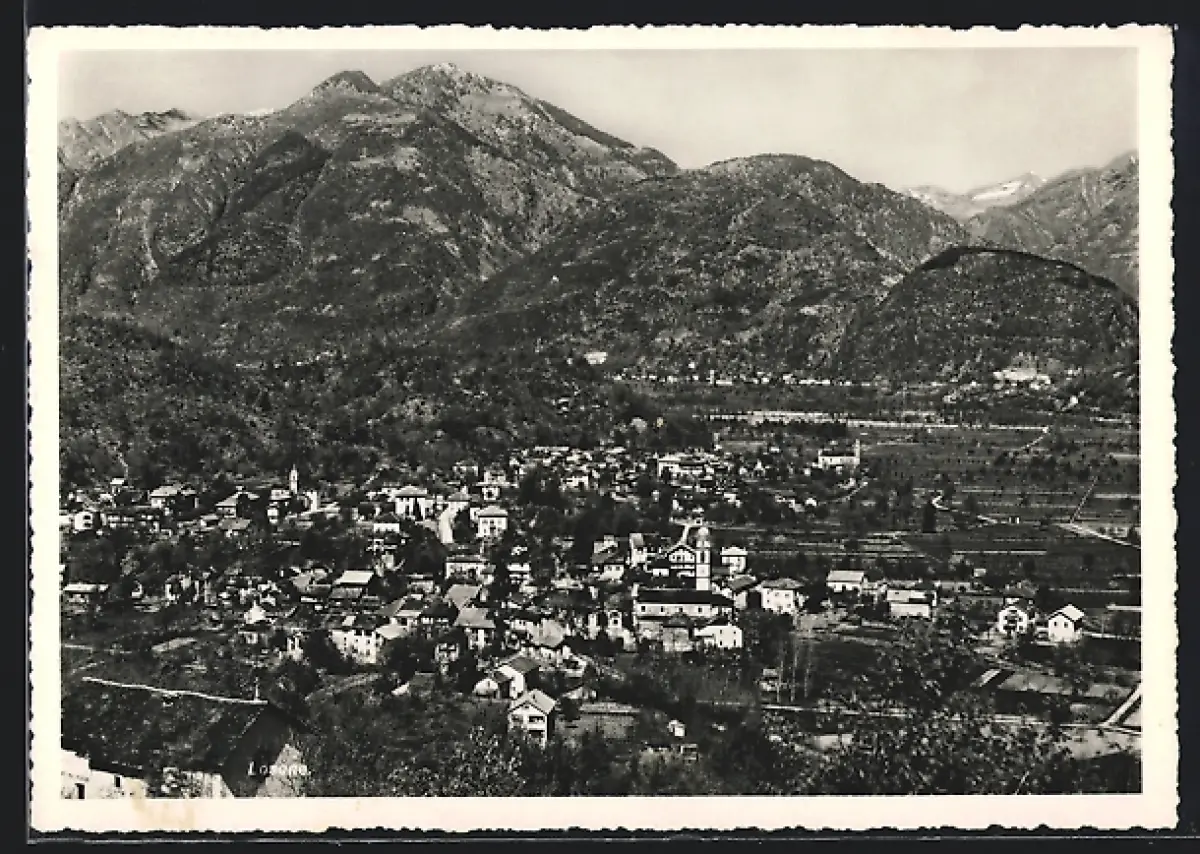 AK Losone, Totalansicht mit Bergpanorama