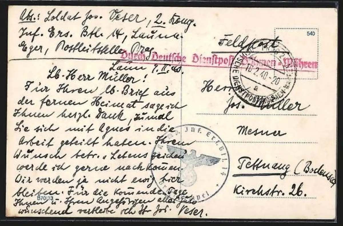alte Ansichtskarte, gelaufen 1940, guter Zustand