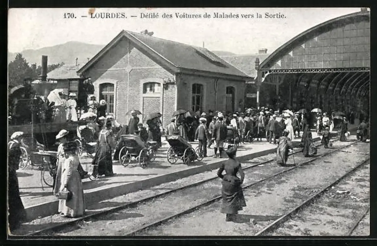 AK Lourdes, Dèfilè des Voitures de Malades vers la Sortie