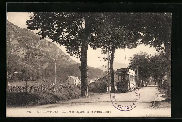 AK Lourdes, Route d`Argelès et le Funiculaire, Strassenbahn