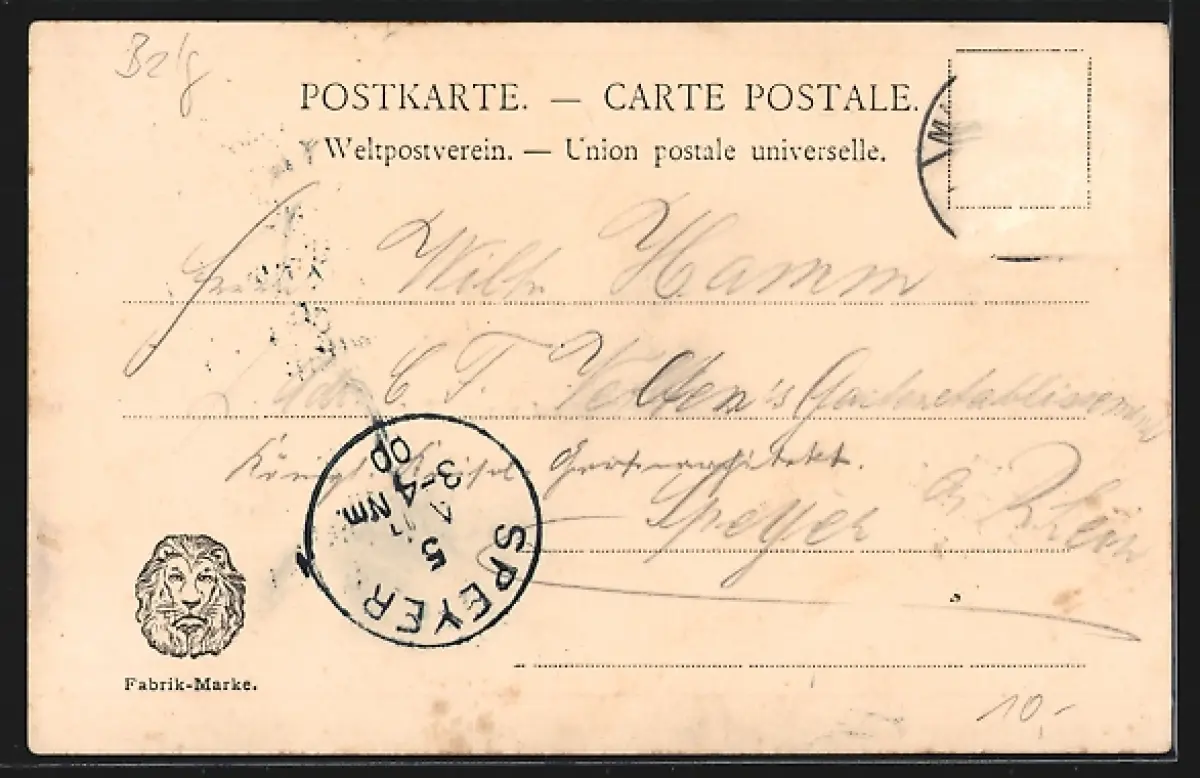 alte Ansichtskarte, gelaufen 1900, Briefmarke entfernt, guter Zustand