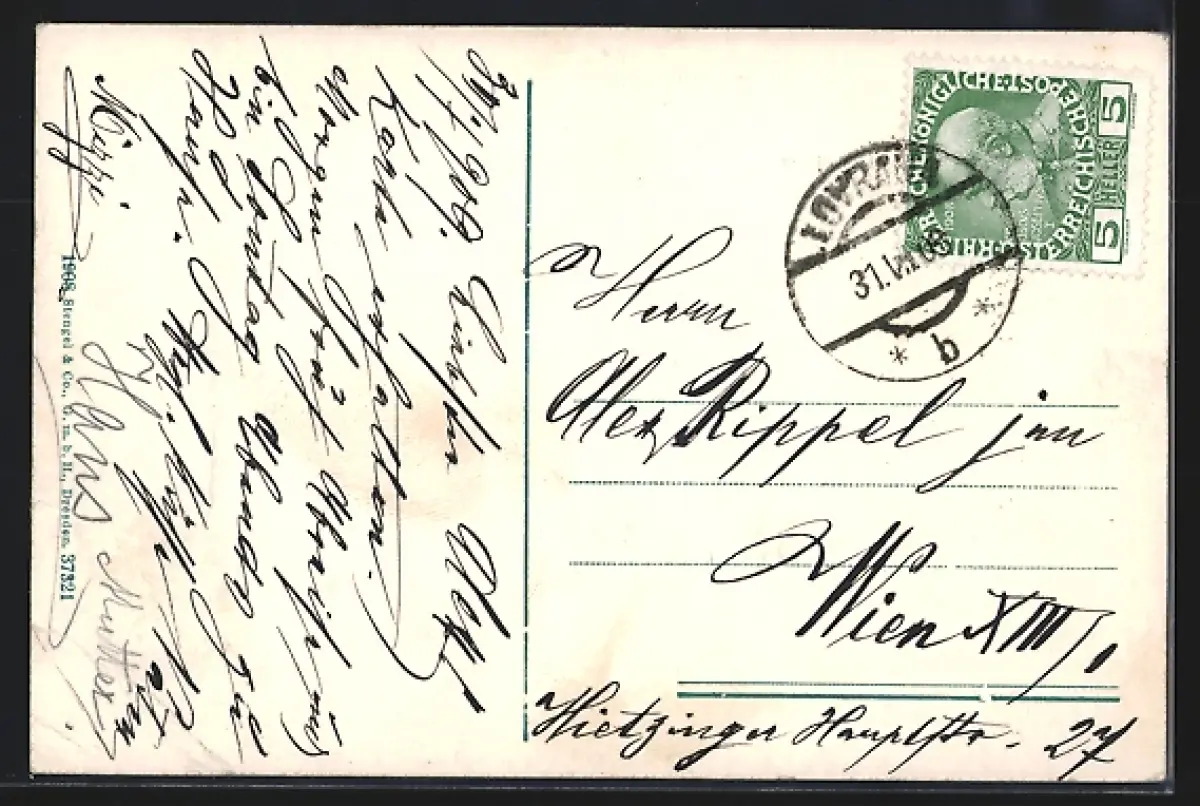 gelaufen 1909, Eckknicke re. unten, Stempelspur, guter Zustand