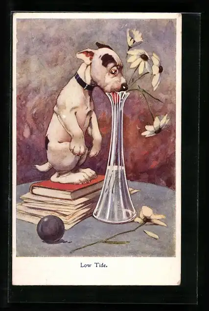 AK Low Tide, Bonzo versucht an Wasser in einer hohen Blumenvase zu kommen