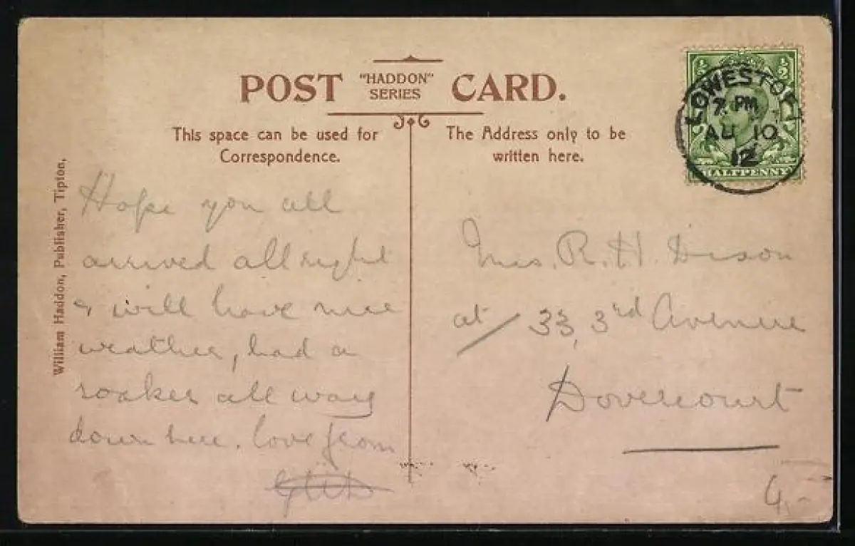 alte Ansichtskarte, gelaufen 1912, Eckknick re. unten, Eckknick und Einriss li. oben