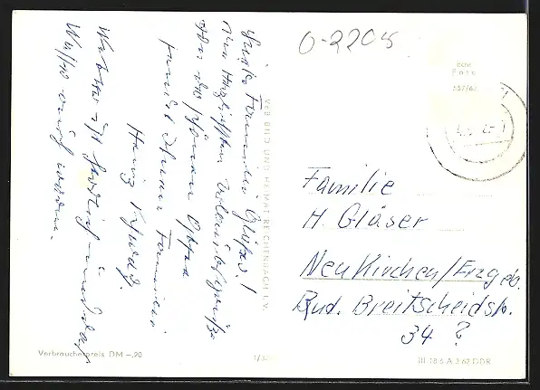 alte Ansichtskarte, gelaufen 1962, Briefmarke entfernt, guter Zustand