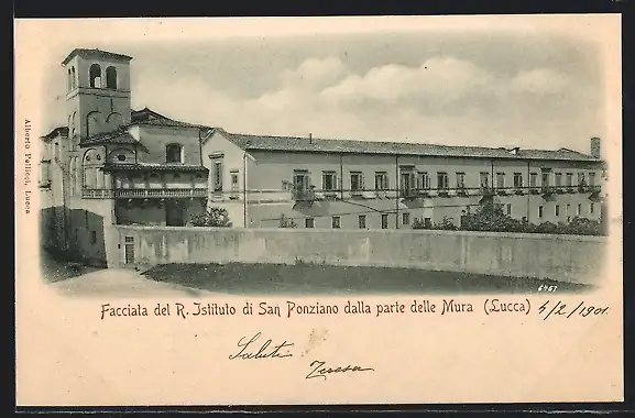 AK Lucca, Facciata del R. Istituto di San Ponziano dalla parte delle Mura