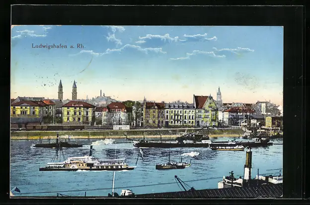 AK Ludwigshafen /Rh., Panorama mit Rhein