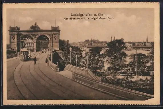 AK Ludwigshafen, Strassenbahn auf der Rheinbrücke